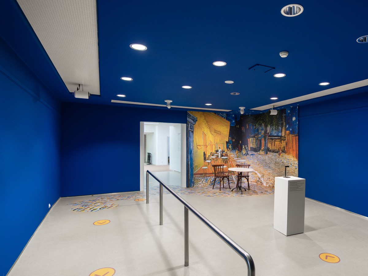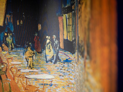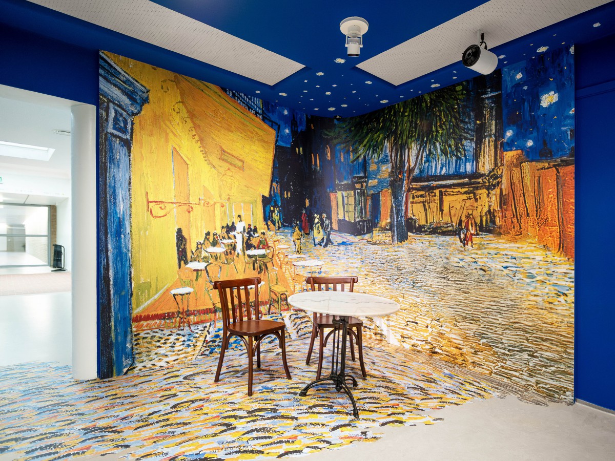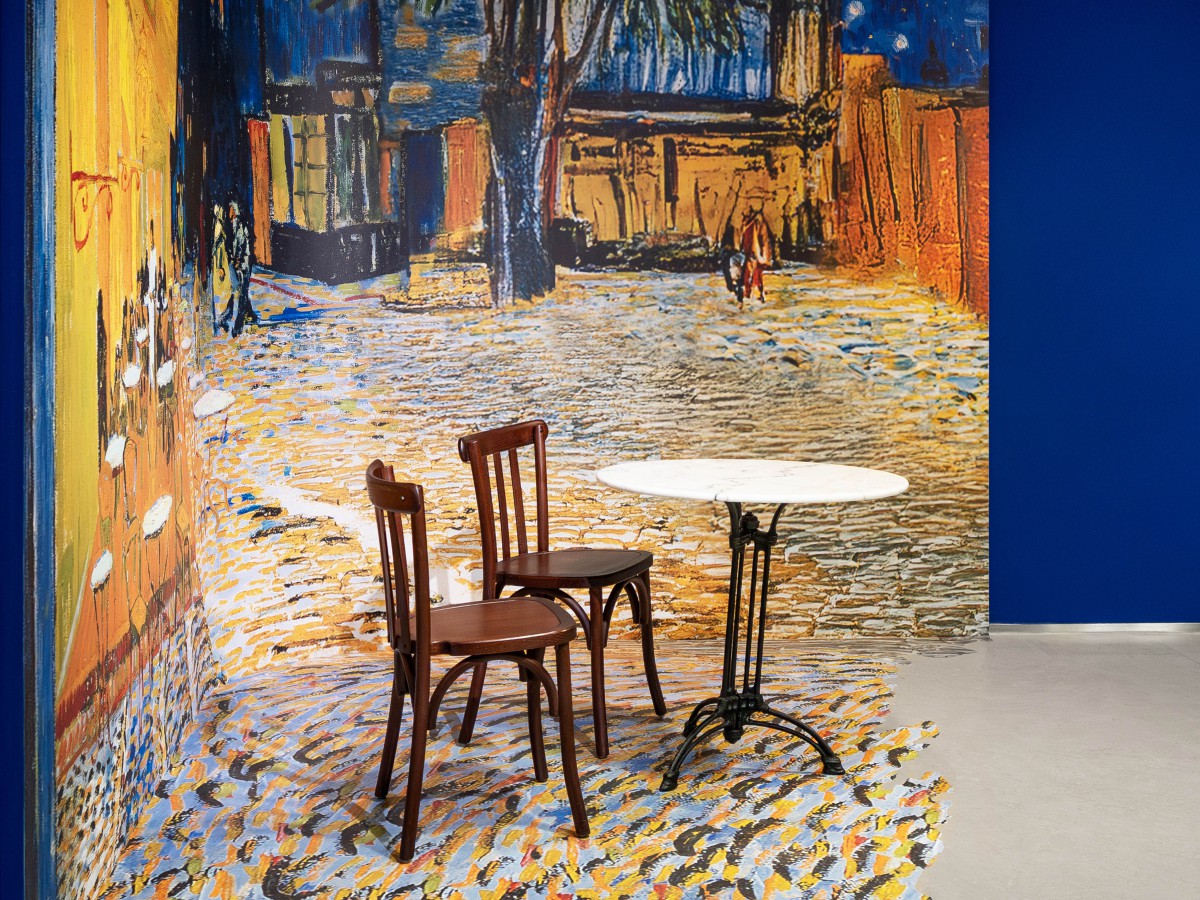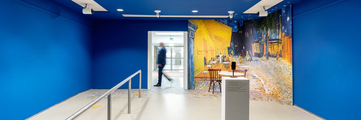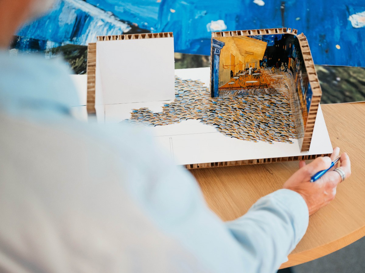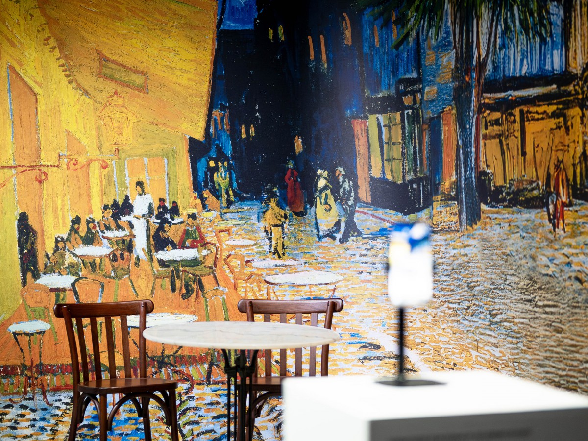 Plaatsnemen in het Caféterras bij Nacht van Vincent van Gogh? Dat kan bij het Kröller-Müller Museum in Otterlo. Omdat dit wereldberoemde schilderij een jaar lang op reis is naar Japan, laat het museum bezoekers het kunstwerk in die periode op een creatieve manier beleven. Iwaarden werd gevraagd om deze bijzondere presentatie vorm te geven, van concept en ontwerp tot productie en montage. Het resultaat is een levensechte ruimte waarin bezoekers letterlijk onderdeel worden van Van Goghs meesterwerk.