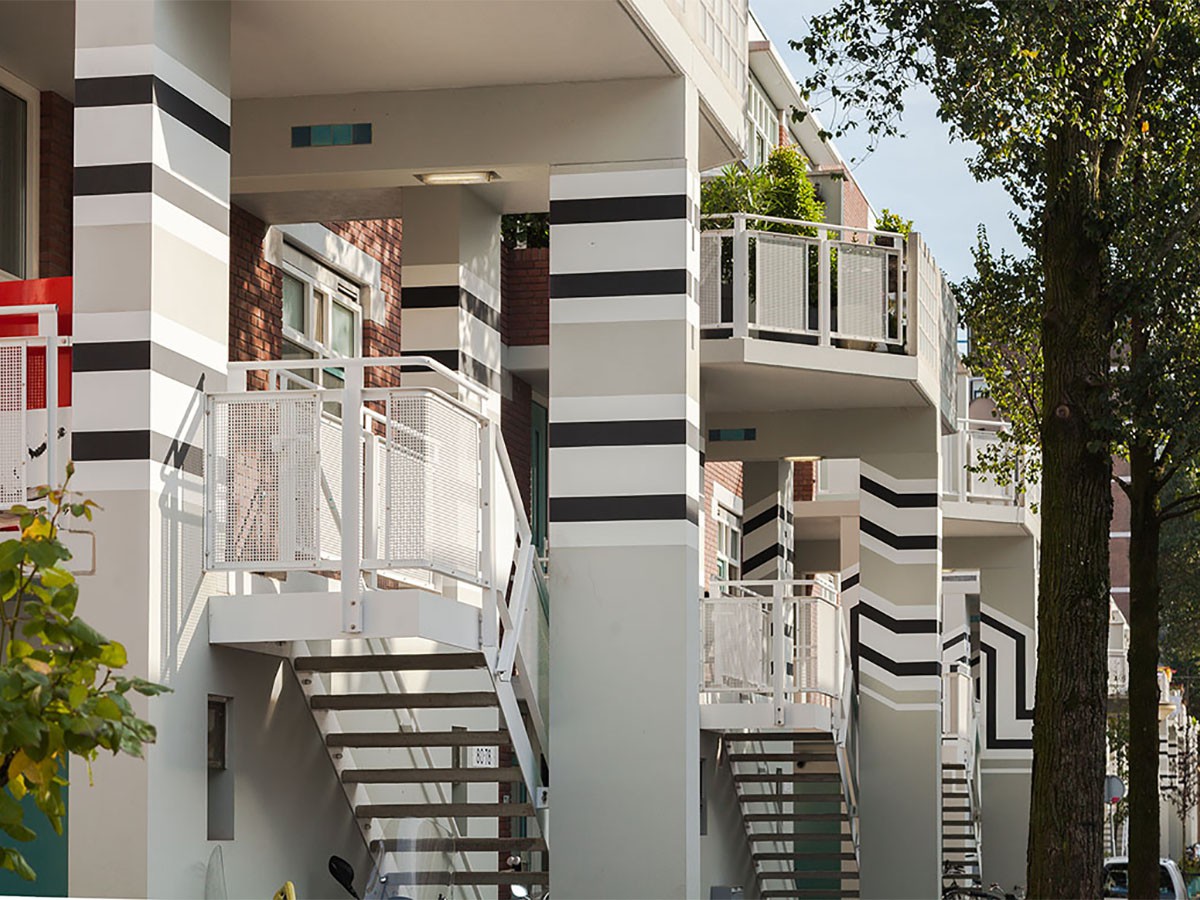 In samenwerking met Ymere en Jasmijn Visser heeft Iwaarden een verftechnisch advies uitgebracht, projectbegeleiding op zich genomen, de tekeningen gedigitaliseerd en zijn de muurschilderingen met een oppervlakte van meer dan 800 m2 handmatig opgezet en geschilderd in 2 kleurtonen.