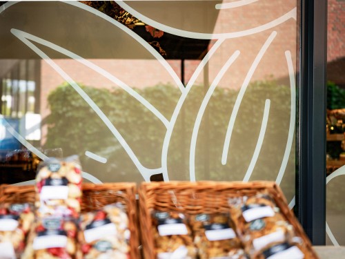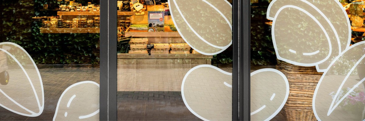 Voor de gevel van delicatessenzaak De Knabbel in Voorthuizen heeft Iwaarden een ontwerp gemaakt voor een opvallende signing op de raampartij. Geïnspireerd door ons Rayzers-project in Amsterdam benaderde eigenaresse Loes Mulderij ons om mee te denken over een passend visitekaartje voor haar nieuwe winkel in het hart van het dorp. De opdracht was helder: ontwerp een blikvanger die impact maakt, esthetisch sterk is en daarnaast zorgt voor een stukje afscherming van het kassasysteem. Op basis van een gedetailleerd stylesheet ontwikkelden we drie ontwerpvarianten. Na het verfijnen van de gekozen richting ontstond dit smaakvolle eindresultaat.